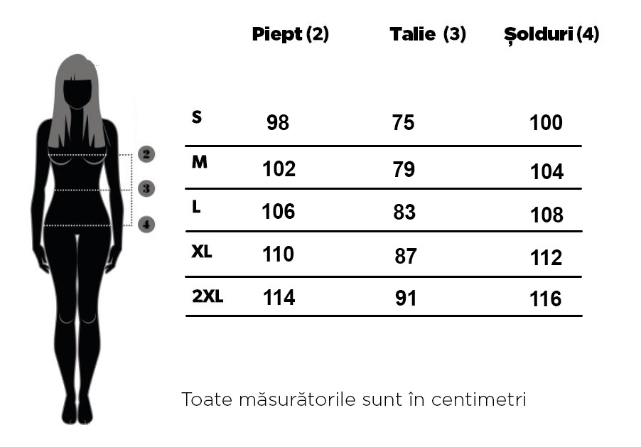 💬 Dacă nu te regăsești în tabel sau ești între mărimi, îți recomandăm să ne contactezi înainte de a plasa comanda.